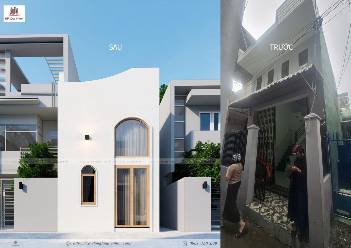Mặt tiền nhà hẹp, không có điểm nhấn kiến trúc.